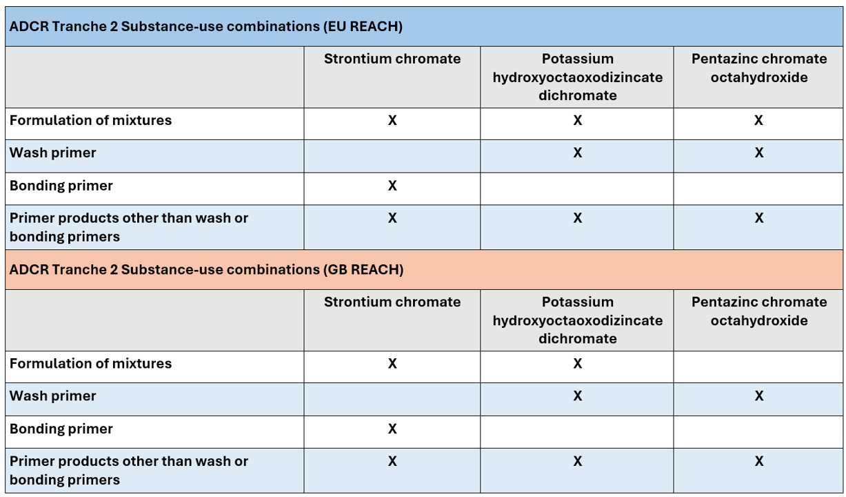 The ADCR Consortium, created in 2019, has submitted a suite of 21 Authorisation dossiers, for 11 uses of five substances (see Tranche 1 table below).